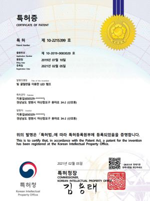 자유로운 용량 증설과 배광 각도조절이 가능한 LED등기구 특허증
